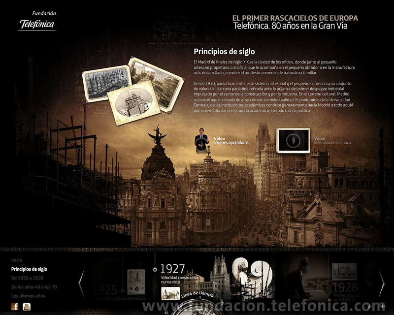 Para conmemorar estos primeros ochenta años y en el marco de las celebraciones por el centenario de la Gran Vía, Fundación Telefónica presenta un espacio en Internet dedicado al edificio del número 28