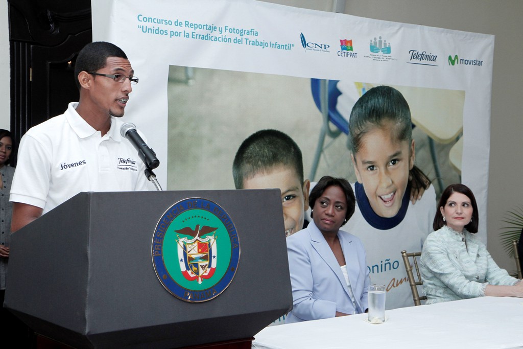 El testimonio del joven de 22 años, tuvo lugar en el evento de lanzamiento del concurso de reportaje y fotografía “Unidos por la erradicación del trabajo infantil”, que fue llevado a cabo en el despacho de la Primera Dama. El importante momento contó también con la presencia del Gerente General de Telefónica Móviles Panamá, Isaac Suárez y de miembros de la Dirección Contra el Trabajo Infantil y Protección de la Persona Adolescente Trabajadora (DIRETIPPAT).