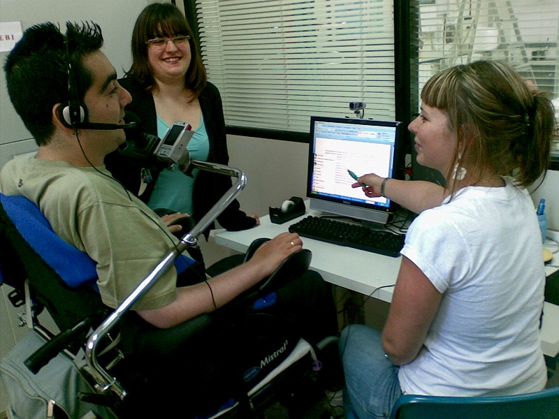 Bilbao, 10 de junio de 2009.- El centro Retadis en Bilbao, con sede en la Asociación de Padres e Hijos Espina Bífida de Bizkaia (ASEbI), facilita desde hace un año a las personas con discapacidad el acceso a las TIC: en la nueva etapa cuenta ya con dos equipos dotados de pantalla táctil, webcam, ariculares con micrófono y sistemas software y hardware adaptados para personas con diferentes discapacidades, como el canalizador dactilar de teclado y el Sistema de Comunicación para la Discapacidad (SISCODIS).