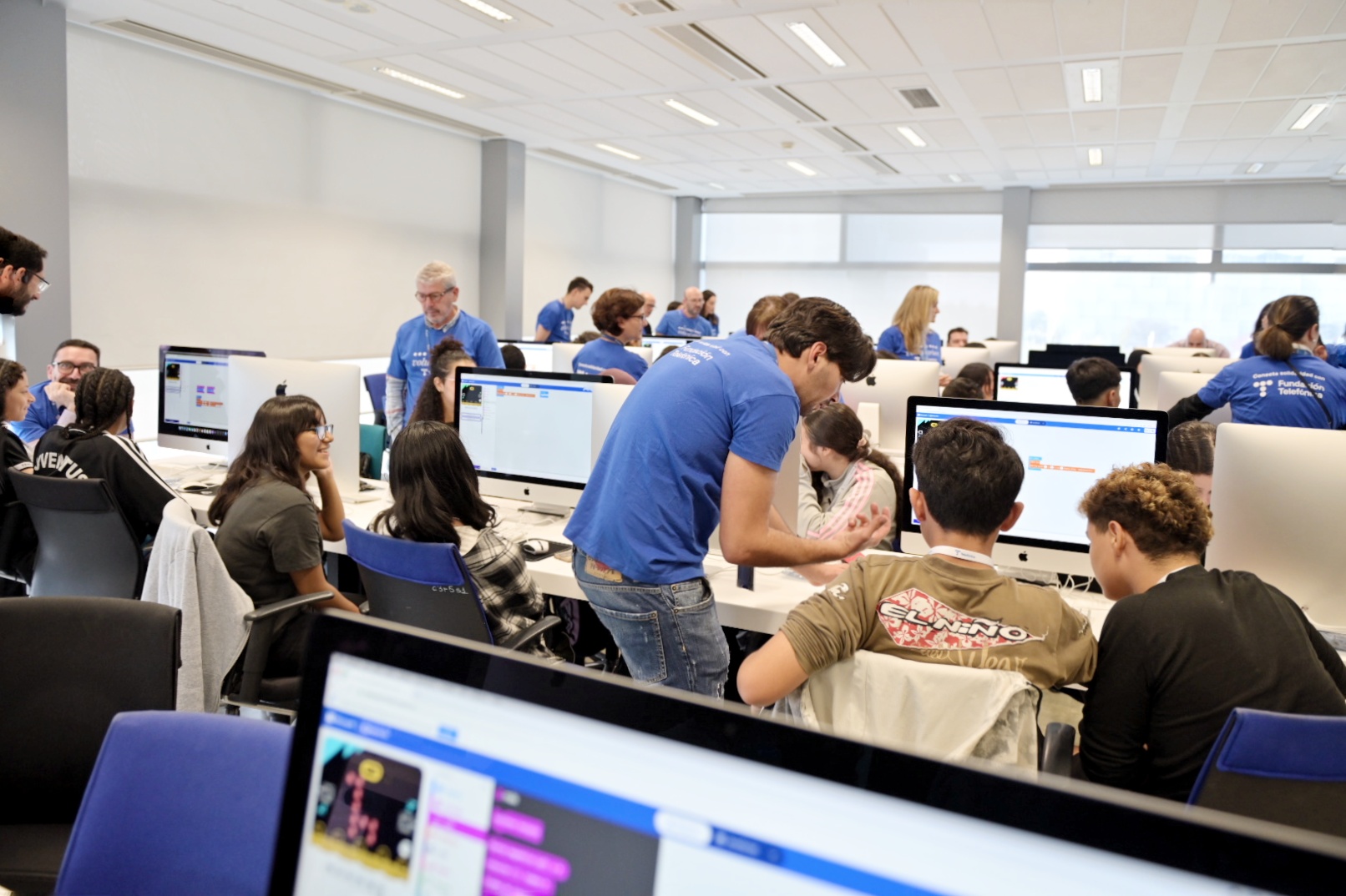Más de 500 voluntarios y voluntarias de Telefónica, junto a más de 20 entidades sociales, han puesto en marcha distintas actividades a lo largo de todo el territorio nacional como el Senior bootcamp y los talleres RECONECTADOS en el Espacio Fundación Telefónica para acercar las oportunidades de la tecnología a las personas mayores; los talleres de emprendimiento para estudiantes de formación profesional; IA para estudiantes de contextos vulnerables en los campus de programación 42; pensamiento computacional para niños y niñas en situación de vulnerabilidad; experiencias inmersivas de robótica para adolescentes en riesgo de exclusión; mentorización de retos tecnológicos de Open Innovation Campus; hackatones educativos como #Hack4edu;taller de identidad digital y prevención de ciberacoso en jóvenes; realidad virtual para personas con problemas de salud mental; campeonato de eSports Unificados con personas con y sin discapacidad; talleres divulgativos en torno a la exposición Fake News. La fábrica de mentiras; o formaciones para técnicos de entidades sociales que trabajan con personas mayores para impulsar su digitalización.